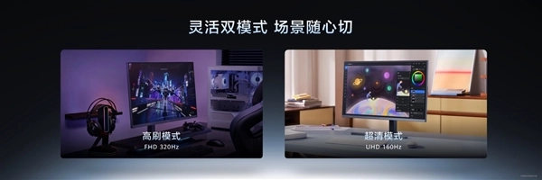 至于娱乐和游戏,这台显示器并没有做取舍,而是提供了一套完整方案,双模切换功能可以在4K 160Hz和1080p 320Hz之间按照需求灵活选择。