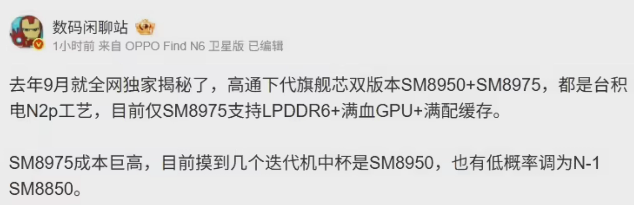 高通第六代骁龙8至尊版芯片曝光:采用台积电2nm制程,推出SM8950和SM8975双版本