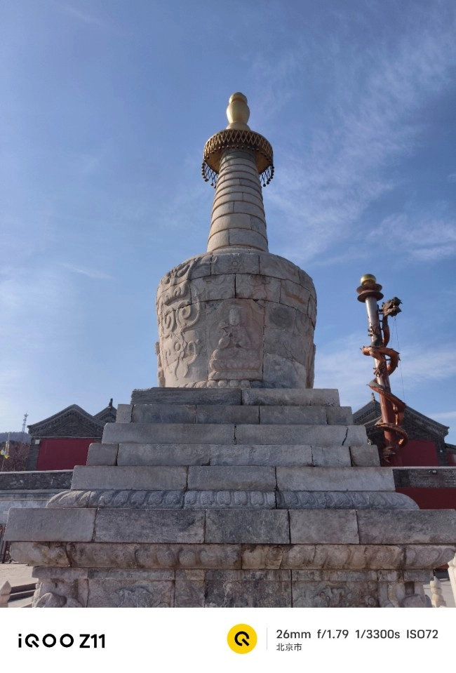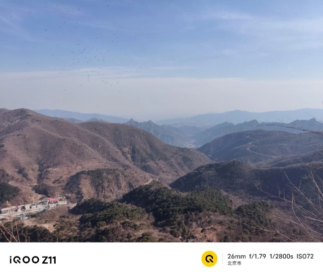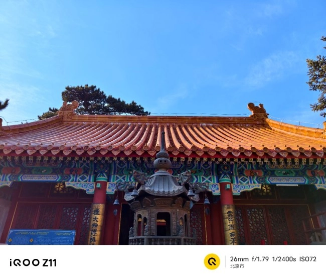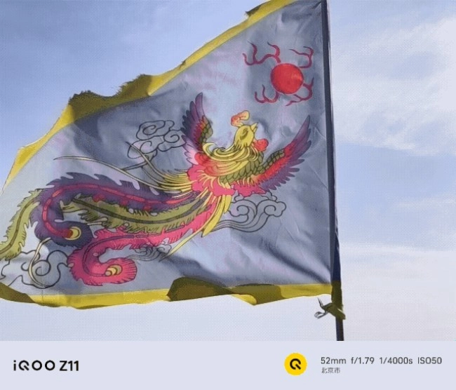 作为一款中端机,iQOO Z11在影像方面的表现同样可圈可点。它配备了一颗5000万像素光学防抖主摄,镜头模组采用简约的圆角矩形设计,与整机风格浑然一体。日常拍摄相当出片,尤其在开启高像素模式时,5000万像素能保留极为丰富的画面细节——无论是巍峨山峰的纹理,还是红砖绿瓦的质感,放大后依然清晰锐利。画面调校风格偏向鲜艳讨喜,直出成片就能直接发布到朋友圈。实况照片的效果也令人惊喜,拍下旗帜迎风招展的瞬间,画面鲜活灵动,并且支持一键分享到微信、微博和小红书,让记录生活的每一刻都更有仪式感。