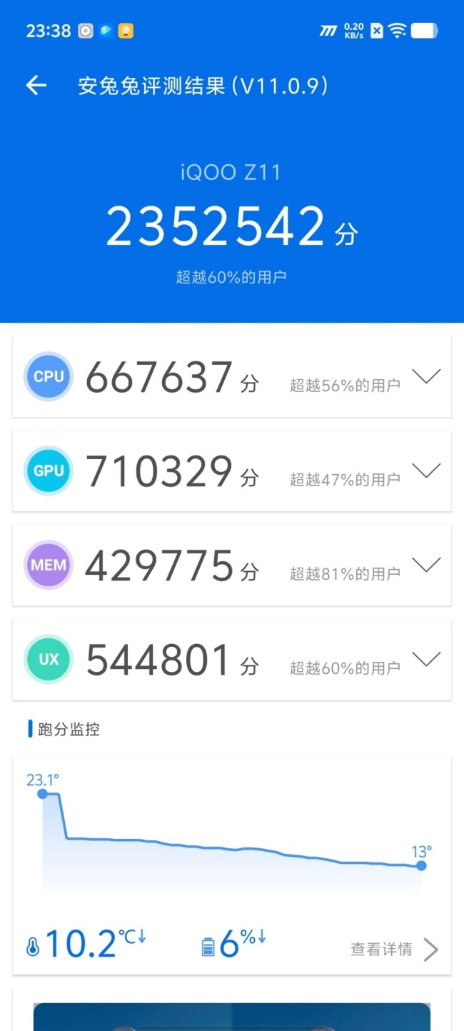 对于中端用户而言,性能表现直接关乎日常使用的流畅度,是选购时最核心的考量之一。iQOO Z11此次搭载了满血版天玑8500芯片,这颗芯片采用全大核架构与台积电4nm工艺,CPU最高主频达到3.4GHz,安兔兔跑分高达235万,再结合先知调度器、闪电加速器、Monster模式等系统层面的深层次优化,可以让手机在多任务处理与高负载场景下都能游刃有余。在一众中端机型中表现相当抢眼,无论是日常应用切换还是大型游戏运行,都能提供流畅稳定的体验。