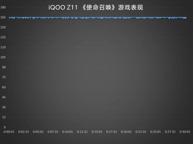在游戏实测中,我们分别测试了《王者荣耀》和《使命召唤》两款热门游戏。《王者荣耀》在极致帧率与超高分辨率设定下,半小时平均帧率稳定在120帧,团战场景也未出现明显波动;而《使命召唤》则在165帧加标准画质的条件下,半小时平均帧率达到了满帧的165帧。从测试结果来看,iQOO Z11能够流畅驾驭各类主流游戏,无论是MOBA还是高帧射击游戏,都能提供稳定顺滑的体验。