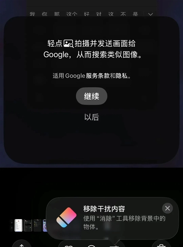 在更新完成后,长按电源键呼出 Apple 智能,同时也同步更新为与海外版相同的边框动画效果,而非传统的 Siri 跳动动画。