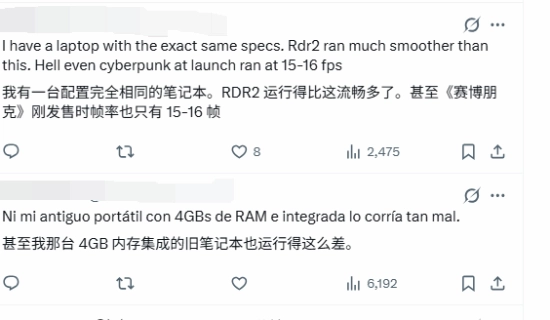 一位丹麦玩家因每天以4帧的低帧率游玩《荒野大镖客:救赎2》而走红。他透露,仅雪山任务就花费了超过12小时,所用设备是一台搭载i5-8300H处理器和4GB显存1050ti显卡的笔记本电脑。