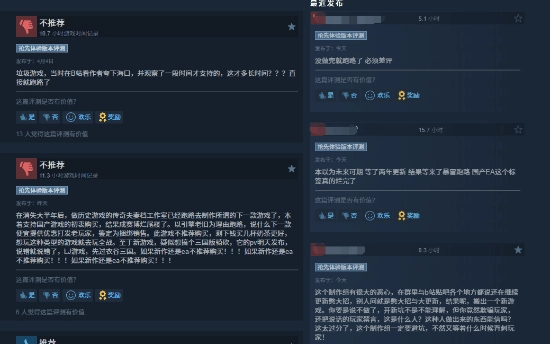 不少玩家在评论区流露出失望的情绪。部分玩家提到,当初正是因为看到作者在B站的宣传和做出的承诺,才选择支持这个项目,并且一直关注着更新的动态,可最后等到的却是“无法正式上线”的消息,觉得实在难以接受。也有玩家毫不客气地表示“项目还没完成就放弃,必须给差评”,还有人指出,等了两年却得到这样的结果,这让大家对国产EA(抢先体验)项目的信任度又降低了一些。