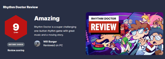 总评:《节奏医生》是我近期玩过最难的游戏之一,不论类型如何。但其音乐、幽默感和角色都极其出色,让我无法放下手柄。最让我喜爱的是,《节奏医生》充分利用游戏这一媒介的独特性来讲述故事,这是其他媒介无法做到的。这些音乐不仅仅是用来跟着打节拍的;你能真正感受到它们,你能体验它们传递的情感,因为游戏呈现方式本身就让这些情绪生动起来。这是一次了不起的成就。而这一切,只需要一个按钮。