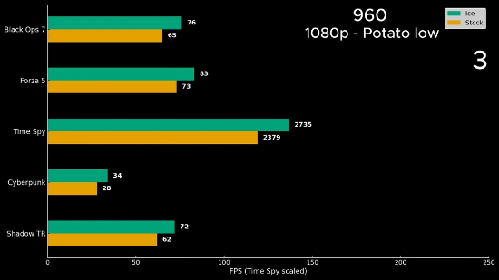 随后他针对GTX 960展开了测试,在一致的环境条件下,这款老旧显卡的性能得到了显著释放。在《赛博朋克2077》这类游戏里,帧率提升了21%,加速频率也增加了220 MHz。综合各项测试结果来看,GTX 960的整体性能提升幅度大约达到了17%。