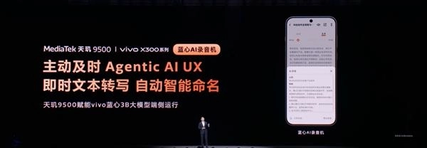 vivo X300 Pro则基于天玑9500的端侧算力,实现了录音离线转文本并自动生成标题的功能,商务会议的机密谈话可在本地完成整理,从根本上杜绝了信息外传的风险。
