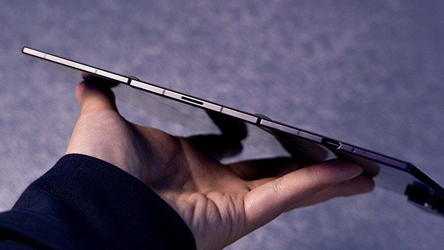 三星Galaxy Z TriFold采用内向多重折叠设计,用户进行两次展开操作后,一块10英寸的巨屏随即呈现。闭合时,6.5英寸的外屏则可提供旗舰手机的完整体验。在完全展开状态下,该机机身薄至约3.9毫米,是目前机身最薄的Galaxy机型。同时,三星Galaxy Z TriFold的内折设计还能够更好地保护主屏,搭配两个不同尺寸的双轨结构铰链协同运作,不但能实现轻松顺滑、流畅稳定的开合效果,还能让屏幕更加紧密地贴合,进一步缩小折叠状态下的厚度。