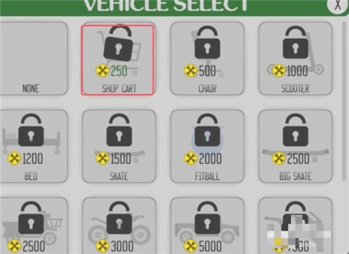 7、这就是购买车辆的页面,每种车需要不同数量的金币,有足够的才能买对应的车,当然越贵的车,受伤指数会越大的。