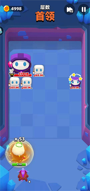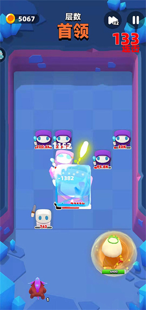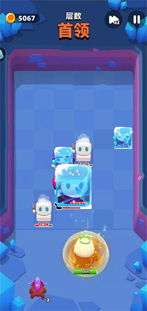 上面和下面的这几张图都是使用冰球流派后的实战表现,可以看见冻住boss的概率是非常高的,对于能治疗友军和召唤小兵的这两种boss非常克制。不过大家攻击的时候尽量不要直接往它们脸上发射子弹,最好有一点角度,这样可以多次反弹,从而提升伤害和冻住它们的概率。
