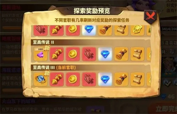 遗迹探索中有几率刷新到1、2个招募令,500钻石、大量英雄碎片等等。