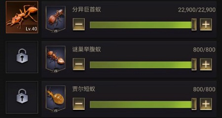2、进化出【强化孵化】后,兵蚁可以用蜜露强化兵蚁,晋升兵蚁的属性。