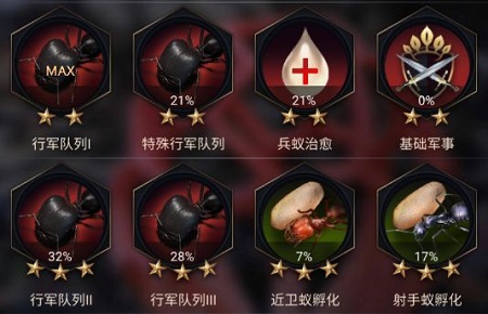 2、进化【基本兵种】有关科技,能够晋升兵蚁的出产速度与数目。