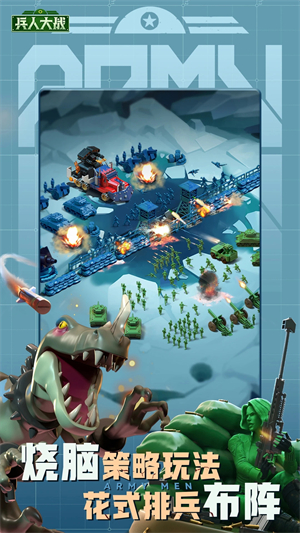 兵人大战的老版本属于一款多人即时策略的放置战争类游戏。在这个游戏里,玩家能够感受到小时候小兵人打仗的那种情景。玩家在游戏中得去收集厉害的军官和军队,从而组建出一支强大的兵团,用来对抗前来入侵的敌人。针对具有不同能力的敌人,玩家需要灵活运用不同的策略放置以及各种各样的排兵布阵方式来应对,这是很关键的一点。