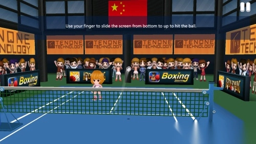 3、借助虚拟摇杆来控制选手的走位,同时配合手势滑动以完成击球动作。