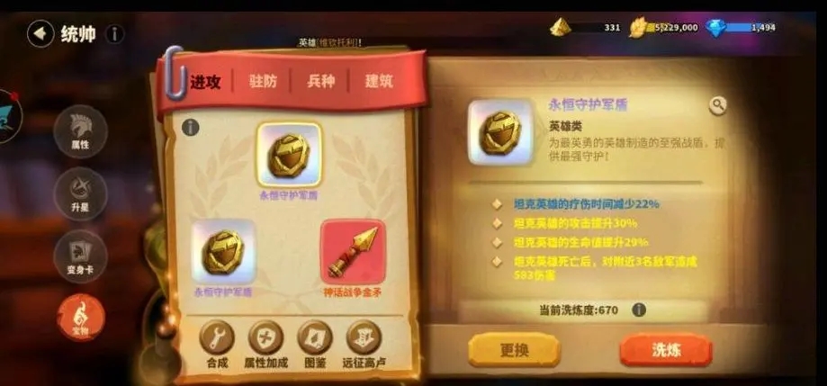 现在英雄、防守、建筑、兵种的宝物都可以带四件宝物了,且四件一起上阵时,按最低的宝物级别可以激发共鸣属性。
