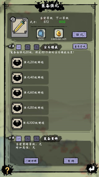 重修:每次第一次到100级的倍数等级时,会有一个瓶颈不能继续升级了,这是你的主角就需要重修了。