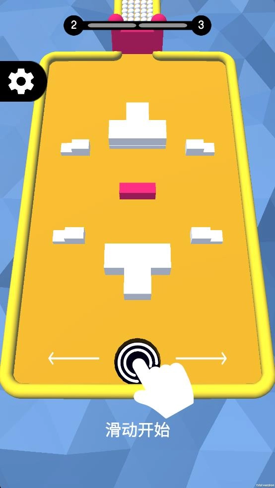1. 轻点底部的黑色圆形操控按键,通过左右滑动来调整方向,将白色方块对准路径后进行推动,让它能够顺畅地穿过黄色区域。