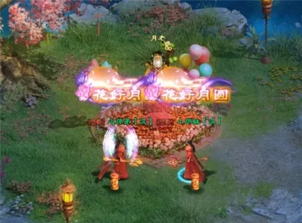 当新郎新娘的婚车均护送成功后,即刻开启婚礼副本以举行婚礼。婚礼副本开启后,新郎新娘会径直进入副本,并向各自的亲朋好友发送婚礼邀请,对方同意后便可进入婚礼副本。此外,其他玩家还能通过与月老对话的方式,进入该婚礼副本。