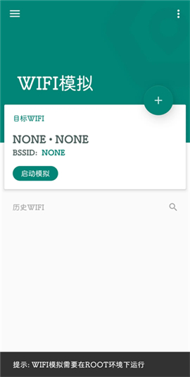 首次无论软件是否打开都可以直接连接WIFi,连接后手机只要不手动删除WIFi信息自然会有记录,以后只需要打开软件和手机的WIFi网络开关,选择WIFi模拟,点击+号添加自己想要模拟的WIFi环境后启动模拟即可。