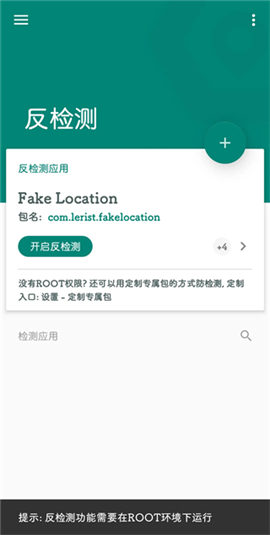 反检测:防止某个应用检测到FakeLocation,例如运动世界校园如果不做权限限制或者其他隐藏措施就会检测到手机安装有虚拟定位工具,限制软件的继续使用,该功能需要Root权限。