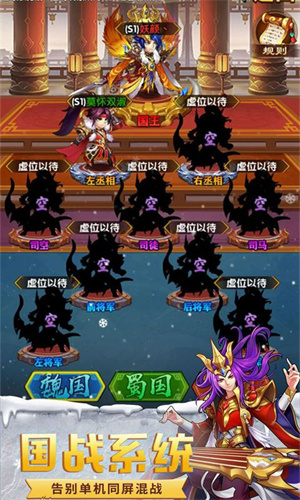 极品三国红包版同样具备特色的幻武系统,玩家能为武将解锁各式独特技能,使武将变得更加强悍。此外,游戏还包括PVP对战模式,玩家可与其他玩家一同体验紧张激烈的对抗战斗。