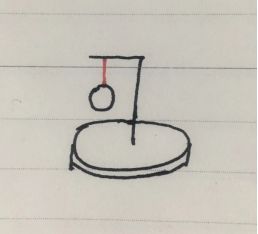 如果是这种模型,一根悬吊线就拉不住了,会朝左下方倒去,这个大家应该都看得出来吧,所以我用手在左下扶一下: