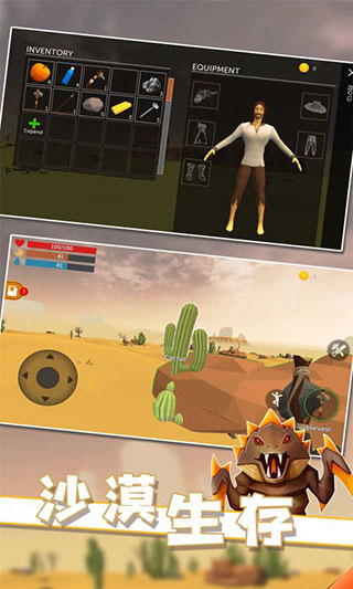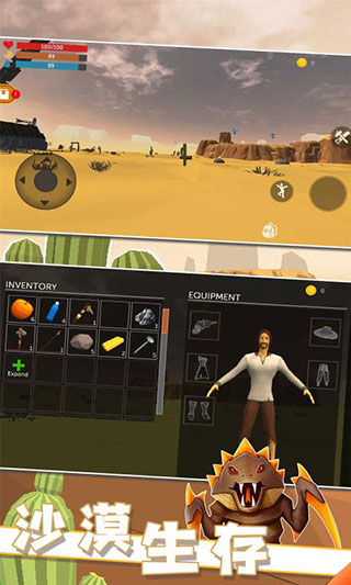 1、游戏的设定是一个架空的世界,我们由于热气球燃料耗尽的原因迷失在了一片沙漠之中,我们只能依靠手中仅有的物资来求生,水和食物是重中之重,我们的水分和饥饿值在不断地下降,所以保存足够多的水和食物是我们生活的基础。而且沙漠中有着无数的怪兽,我们要尽可能躲避和利用他们来求生。