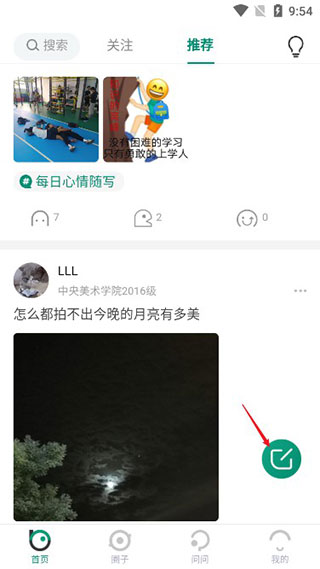 5、另外,点击右下角的按钮,可以发送自己的动态;