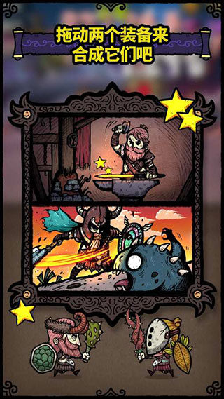 4、休闲放置式玩法在玩家在离线时英雄会自动战斗为玩家提供丰厚的离线收益。2、通过合成两个装备来获得更好的装备;