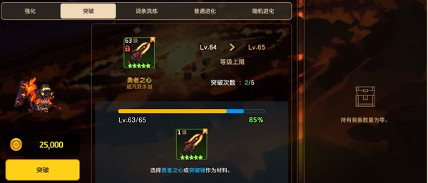 在角色满星之后,可以花费英雄水晶进行突破,突破能够解锁英雄的等级上限。