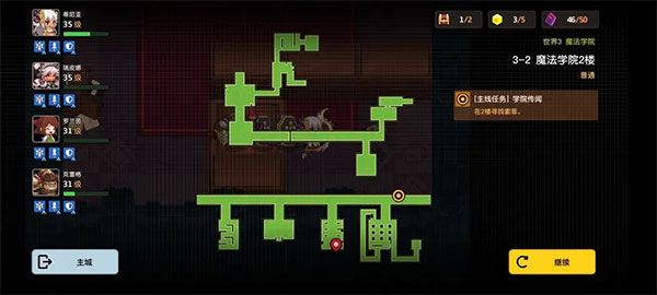 2、拿完学生证来到3-3图示位置,找这个NPC接取任务,提示我们去四楼(3-5)找镜子。