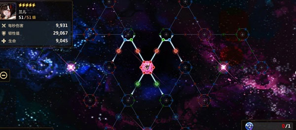 外面一圈节点是普通节点,红蓝绿三色分别对应攻击力、防御力和生命值。