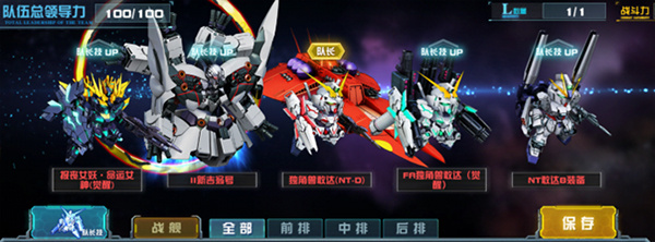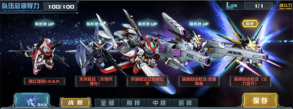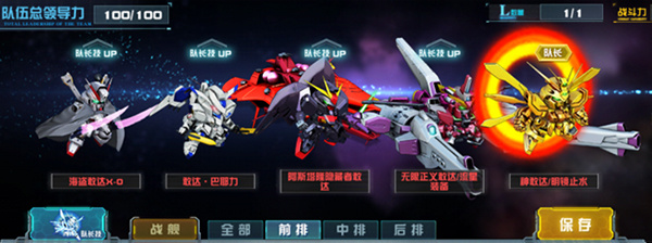 除去了每个机体所拥有的个体技能,敢达决战中还拥有独特的队长技能以及合体技能。