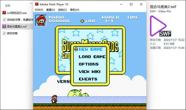 1、小编找来的是混合马里奥swf文件,需要配合flash运行程序才能游玩,不过是全程单机无需联网的!现在解压出来吧