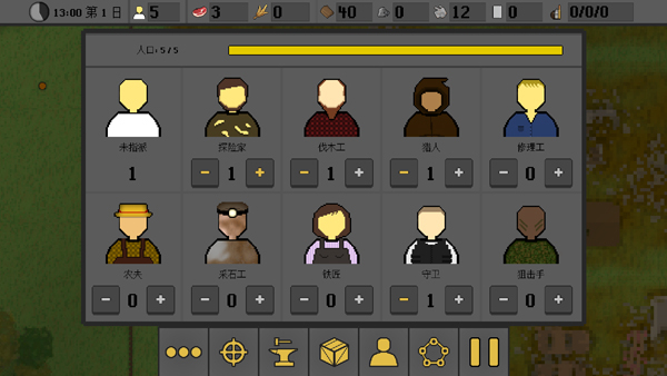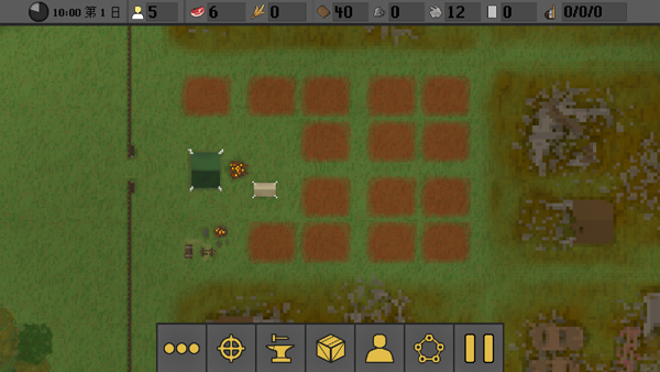 3、 建立自己的营地,利用好资源和道具,分配工作任务,保证生存。
