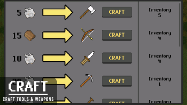 6、玩家还可收集材料制作斧头、弓箭、匕首等武器进行狩猎和防守;