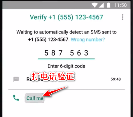 7、如果不想输入验证码,可以通过打电话验证,点击Call me;
