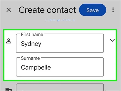 4、输入对方的姓名。你可以在屏幕顶部附近的“名字”和“姓氏”填写联系人的姓名。