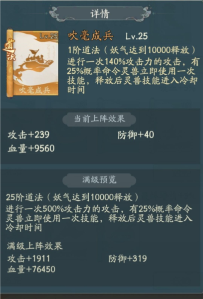 道法:吹毫(25%灵兽出手一次)跟应龙搭配就是增加应龙的出手的几率,道法印记推荐用强化灵兽。