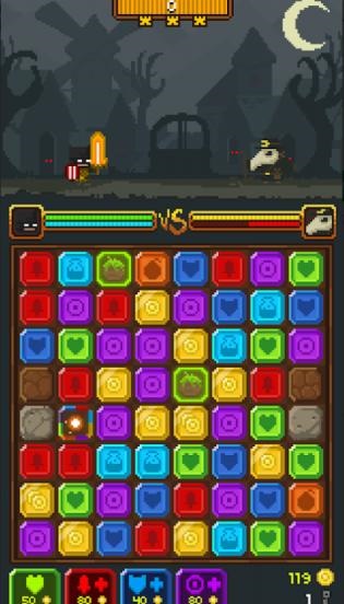 *交换并切换以匹配区块,通过消除方块释放英雄力量,提升英雄的战斗力。