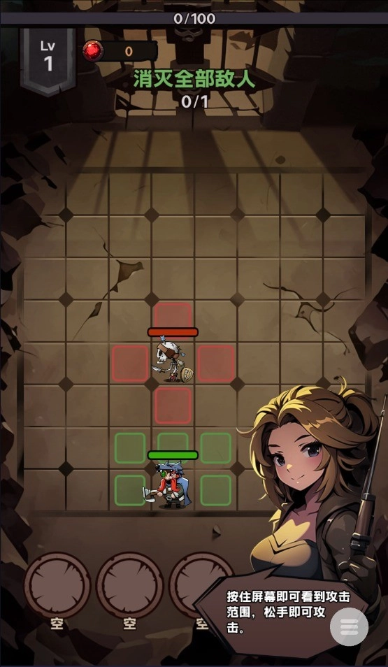 2. 长按屏幕便能查看攻击范围,松开手指即可发动攻击。