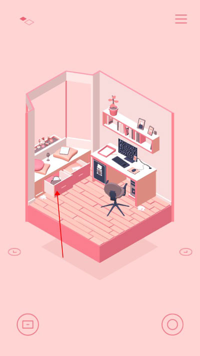 1、按照指示点击床上的音乐盒,然后滑动屏幕旋转房间视角,再点击床头柜。(在这个房间停留30分钟以上,可以获得“Go to your room!”成就)