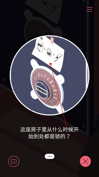 14、同一个房间里,点击电脑桌下的保险箱,注意保险箱密码锁上面的密码提示。