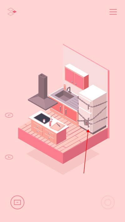 16、移动到厨房(下图的房间),点击冰箱,再点击冰箱上的锁。