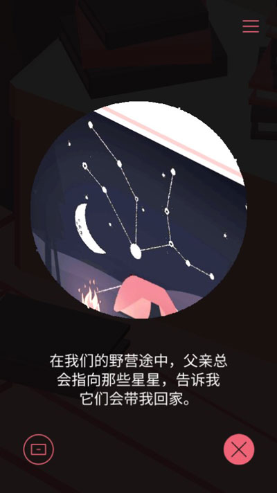 5、旋转房间视角,点击墙上的野营图画,记住图画上的星座形状。