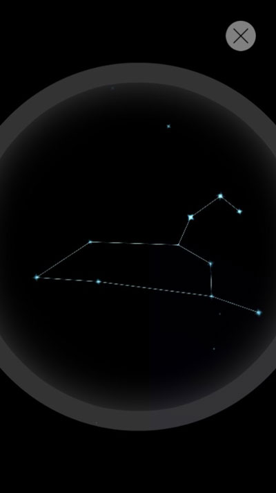 7、再次点击天文望远镜,进入望远镜的画面,拖动画面观看星空,星空出现星座,记住星座的形状。(进入望远镜的画面后,在此画面停留2分钟以上,可以获得“Stargazer”成就)