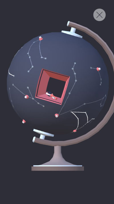 10、在地球仪上找到这两个星座的图案,分别按下对应的按钮,打开地球仪,点击地球仪里的钥匙,获得钥匙。