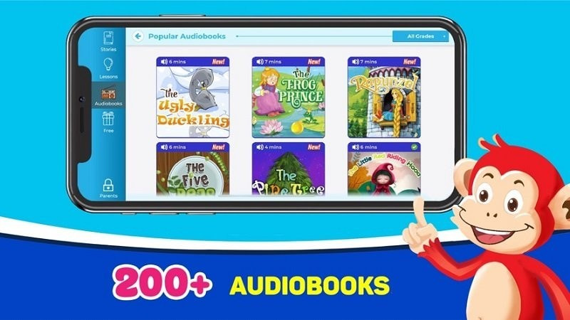 我们的 200 多本有声读物收集了所有孩子都喜欢的最佳故事,包括格林兄弟、汉斯·克里斯蒂安·安徒生的故事。所有有声读物都有生动的音效、音乐和多个叙述者,monkey stories没有广告、弹出式广告或其他网站的链接。孩子们可以在安全的在线教育环境中进行探索;