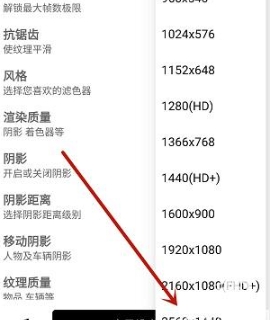 3、接下来我们还能对游戏的分辨率进行设置,选择最底端的“2560X1440”选项,这就是目前画质最好的2k分辨率了!